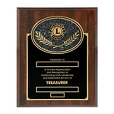 An award to recognise the service and leadership of the Club's Treasurer. Featuring rich crystalline frosted gold/black brass plate on a walnut finished board. Approximately 20.3cm x 25.4cm. Engraving not included.