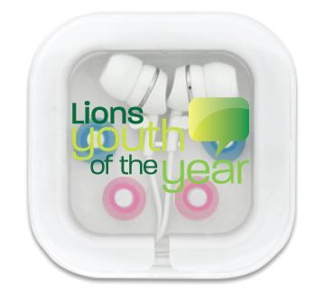YOTY Extended base ear phones presentation item. Colour changeable ear buds.