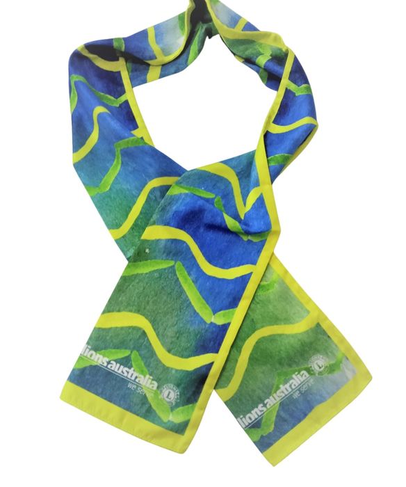 Ladies Lions Australia Multicoloured wiggle Scarf. Double sided, printed. Lions Australia logo on bottom of scarf.