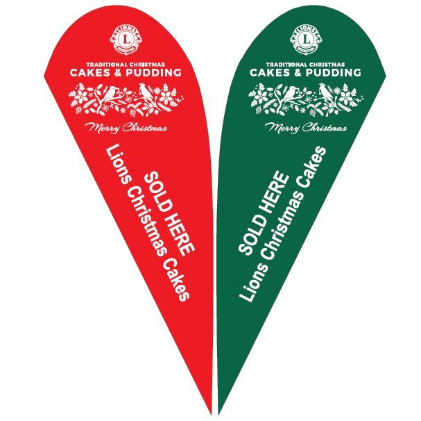 BANNER ONLY. Red and Green Christmas Cake banner, compatible with Teardrop Banner accessories (pole,spike,bag). Sold separately or available as a bundle.