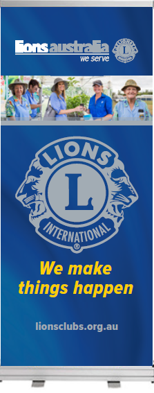 "We Make Things Happen" Lions Aust Banner Artwork FILE ONLY. For general club use at club events. Clubs to arrange production of banner - specs are for Officeworks retractable banner (841mm x 2055mm). Despatched weekly. Do not order with other goods.