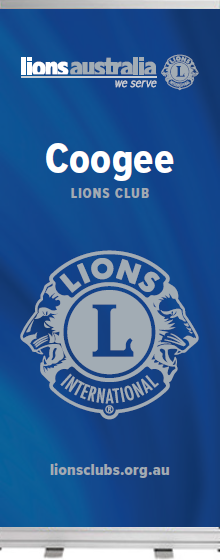 CUSTOMISABLE WITH CLUB NAME Lions Aust Banner Artwork FILE ONLY. For general club use at club events. Clubs to arrange production of banner - specs are for Officeworks retractable banner (841mm x 2055mm). File despatched weekly.