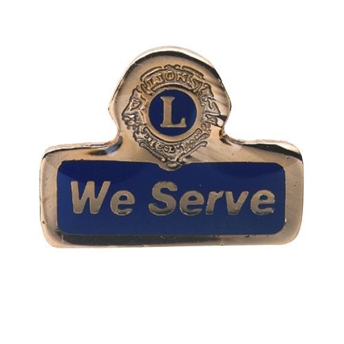 "We Serve" lapel tack. Clutch back. Approximately 1.3cm x 1cm.