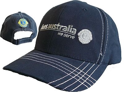 Lions Australia, Navy and White cap. Adjustable width. Lions International logo on back.