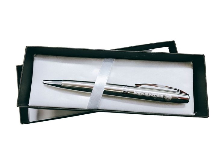 Deluxe electroplated brass barrel, high quality German ink and tungsten carbide ball provide a smooth writing experience. Engraved with Lions Australia logo. Gift box included.