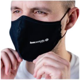 2 layers of black cotton, Lions Australia logo, adjustable ear straps, a squeeze-tight nose clip and internal pocket to allow the wearer to insert an extra layer of protection (i.e. filter, handkerchief etc). Individually poly-bagged. Not medical grade.