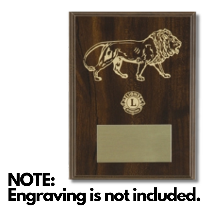 Wlanut finished board with screened Lion and emblem. Engraving not included. Approximately 15.2cm x 20.3cm.
