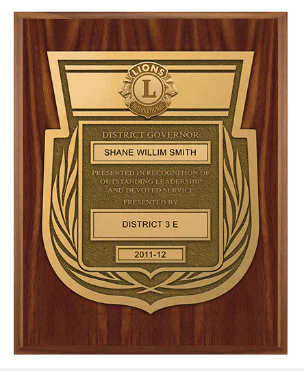 Cast image in metallic finish, inlaid in a walnut panel. To be presented in recognition of outstanding leadership and devoted service. Engraving not included. Approximately 38.1cm x 30.48cm. WILL BE ORDERED ON REQUEST 4-6 WEEK WAIT.