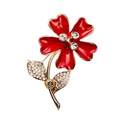 Red flower pin with rhinestones