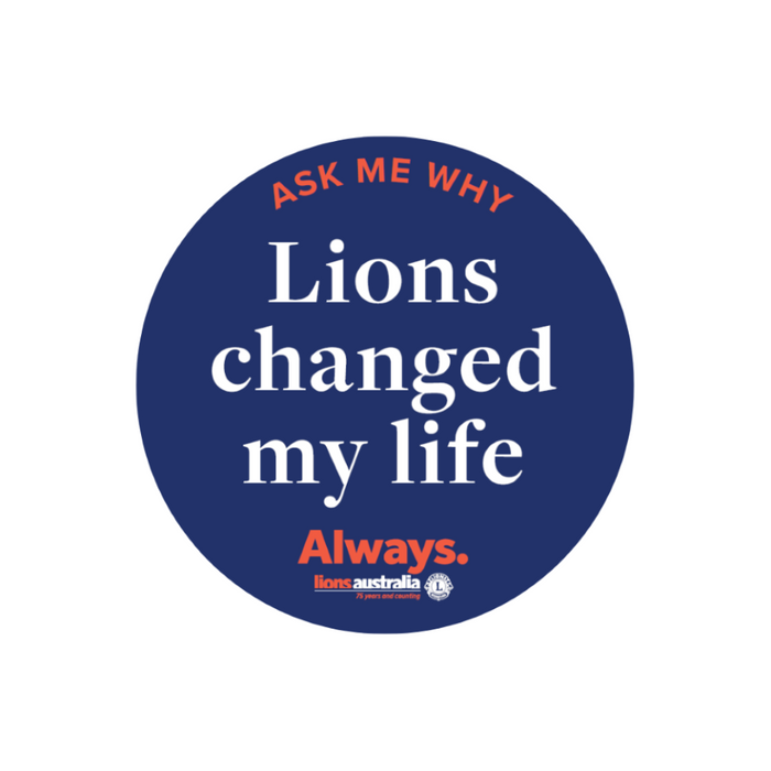 Ask me why Lions changed my life. Glossy 7.5cm button.