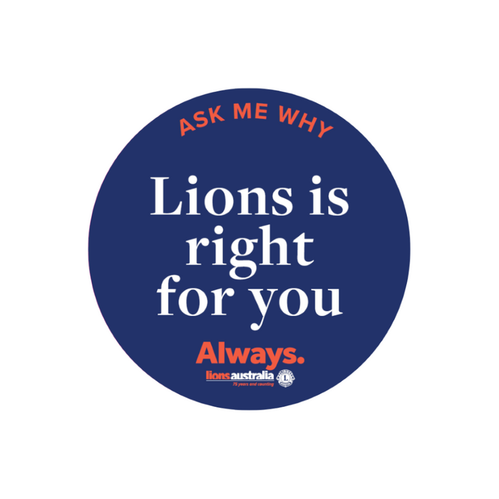 Ask me why Lions is right for you. Glossy 7.5cm button
