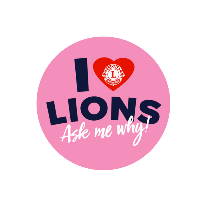 Promotional, I love Lions, Ask me Why. Glossy 7.5cm button.
