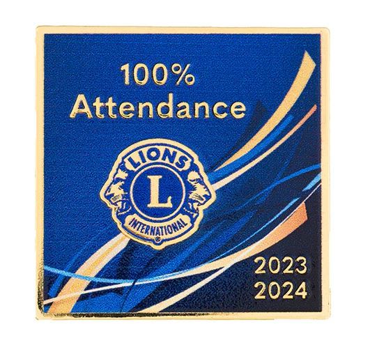 For presentation to those Lions members who have achieved 12 consecutive months of perfect attendance. Clutch back pin in gold electro plate finish.