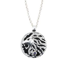 Silver and black Lion Head pendant on a 50.8cm adjustable chain.