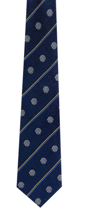 100% Italian silk. Navy with alternating diagonal twin stripes and repeat of woven Lions emblem.