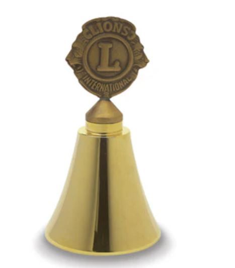 Solid bronze7.6 cm polished bell (with clapper) and Lions emblem top.