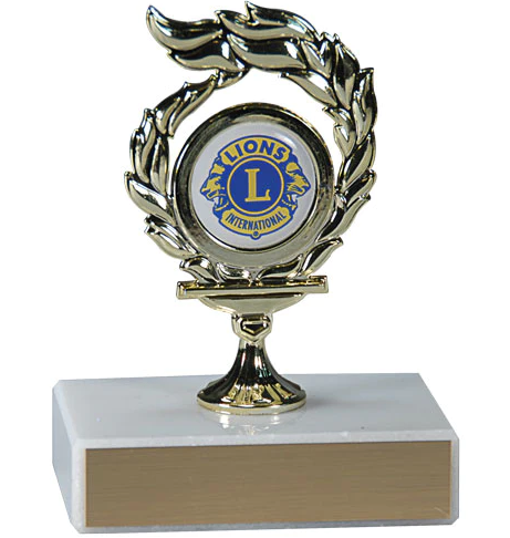 10cm emblem trophy on marble base. Engraving plate approx 7.5cm x 1.5cm, engraving not included