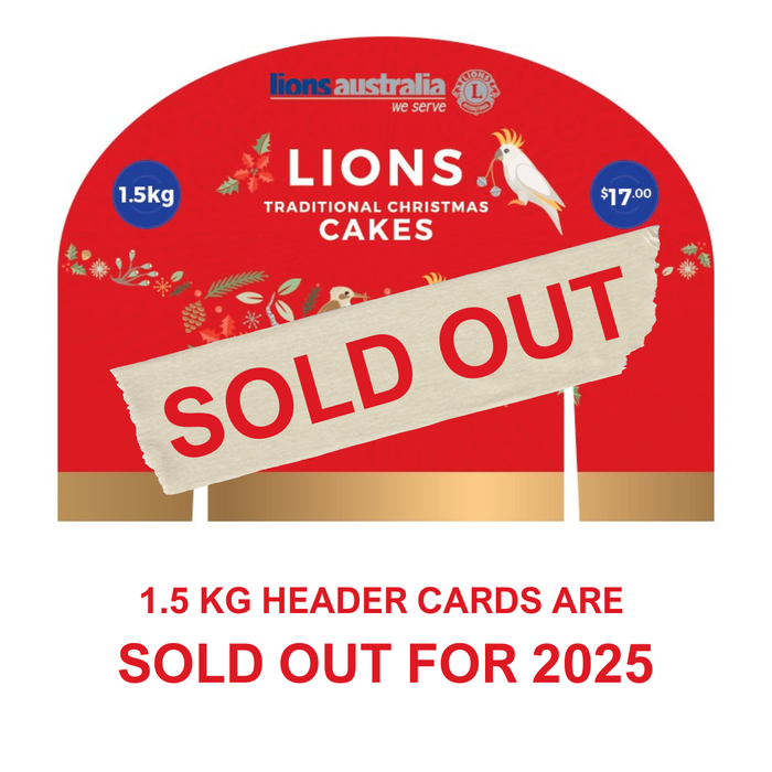 Header cards for 1.5kg Lions Christmas cakes at point of sale. Pack of 10.